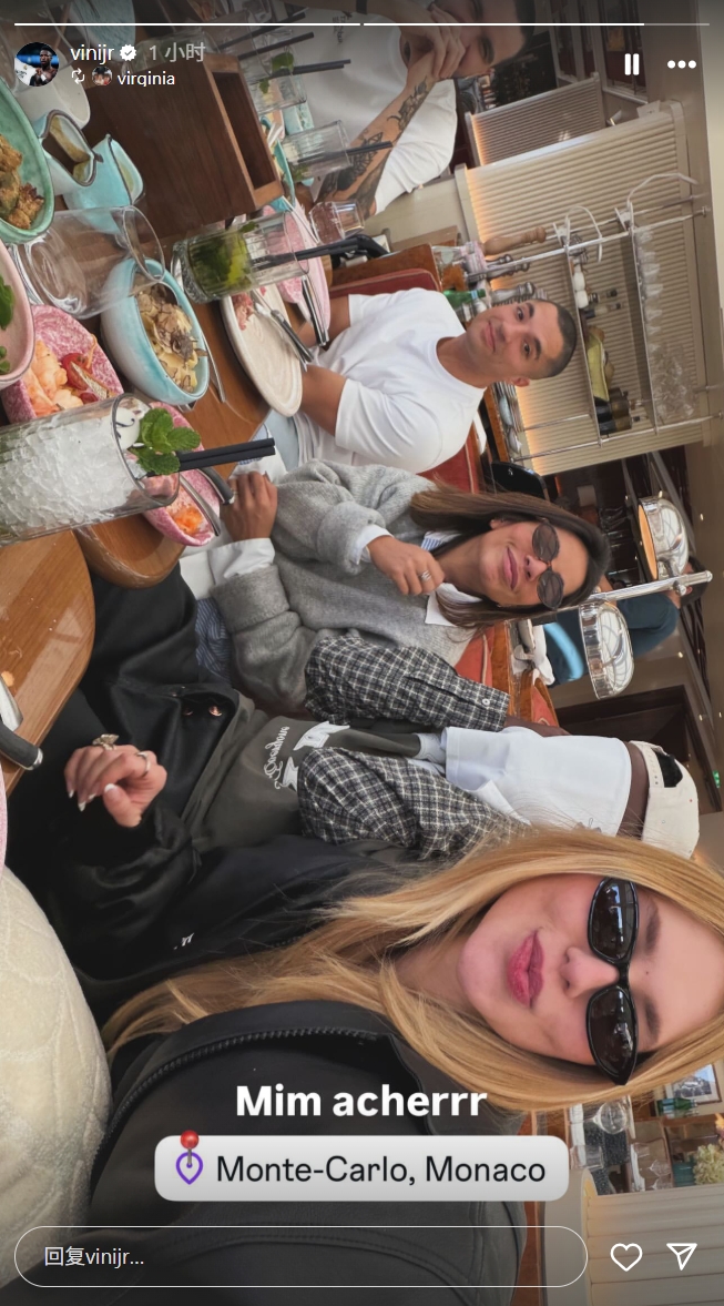 维尼修斯近期在社交媒体上更新了动态,与女友弗吉尼亚共享他们在摩纳哥的浪漫时光。这位年轻的巴西球星在国家德比获胜后,选择与女友一同外出,发布了他们在餐厅用餐的照片。