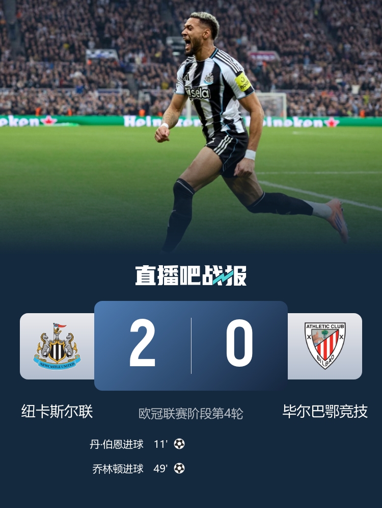 尽管毕尔巴鄂也试图反扑,但纽卡斯尔的防线显然状态极佳。第87分钟,门将波普展现出他极为出色的反应能力,完成了一次关键的扑救,确保球队不失分。最终,比赛的哨声结束,纽卡斯尔联以2-0的比分战胜了毕尔巴鄂竞技,球队在小组中积累了9分名列第六,而毕尔巴鄂则惨遭滑铁卢,收获仅有3分,排名第27。