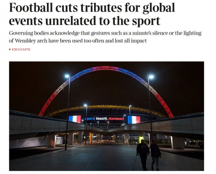令人值得关注的是,除非这些事件与足球有直接的关联,否则联赛将不会安排默哀仪式,也不再亮起温布利球场那道象征着荣耀的拱门。各大俱乐部如今可以自主选择何时对地方性事件做出反应。就拿上个月在曼彻斯特犹太教堂发生的袭击事件来说,博尔顿流浪者、索尔福德城以及两家具有影响力的曼彻斯特俱乐部皆曾举行默哀活动,但这样的行动并未在整个足球界铺开,尽管不少活动人士呼吁统一回应。