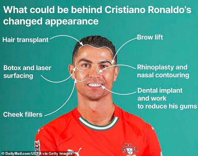 而他的面部轮廓更是让人惊叹,尤其是饱满的颧骨,似乎经过了精心的雕刻;这不仅是自然的馈赠,更是美学的重塑。此外,莱文博士还推测,C罗可能悄然进行了提眉手术及激光焕肤,使得他的肌肤状态如同初出茅庐般生机勃勃。