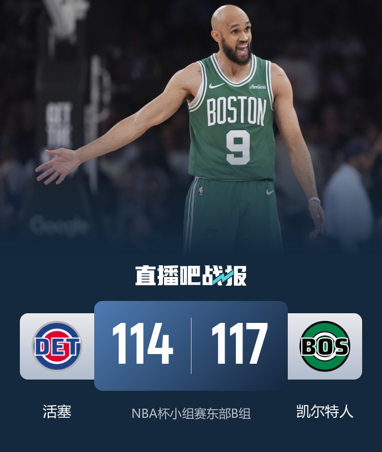 数据方面,凯尔特人:布朗砍下33分、10个篮板、5次助攻,怀特贡献27分、7个篮板、3次助攻,普理查德得到16分、5个篮板。活塞方面,康宁汉姆独得42分、8个篮板和5次助攻,杜伦则抢下16个篮板并得到12分。