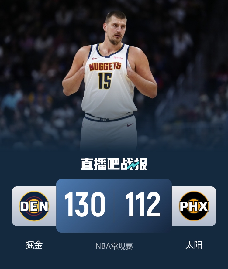 从个人表现来看,太阳队的狄龙得到27分并贡献3个篮板和2次助攻,布克也有24分、4个篮板和7次助攻的出色表现,而奥尼尔则贡献了15分和6个篮板。掘金队方面,约基奇的表现尤为抢眼,攻下26分并拿下9个篮板与10次助攻,穆雷同样表现出色,得到24分和3个篮板,此外,小哈达威也为球队贡献了23分和3个篮板。