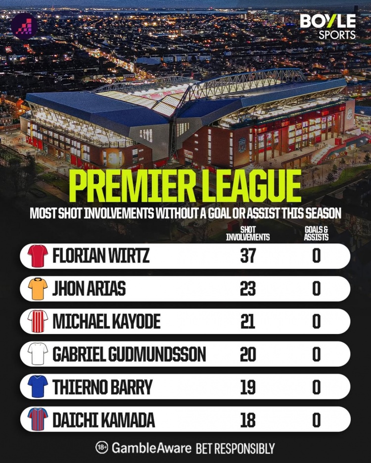 在上轮比赛中,利物浦与桑德兰的对决风波不断,维尔茨的折射进球被英超官方裁定为乌龙,看来这位夏窗的标王真是好运不佳,自己的首球似乎还需要再等等。根据Opta的数据,这位高价球员在本赛季可谓是“参与”了37次射门,但令人心痛的是,至今竟然光荣地保持着零进球、零助攻的尴尬记录。