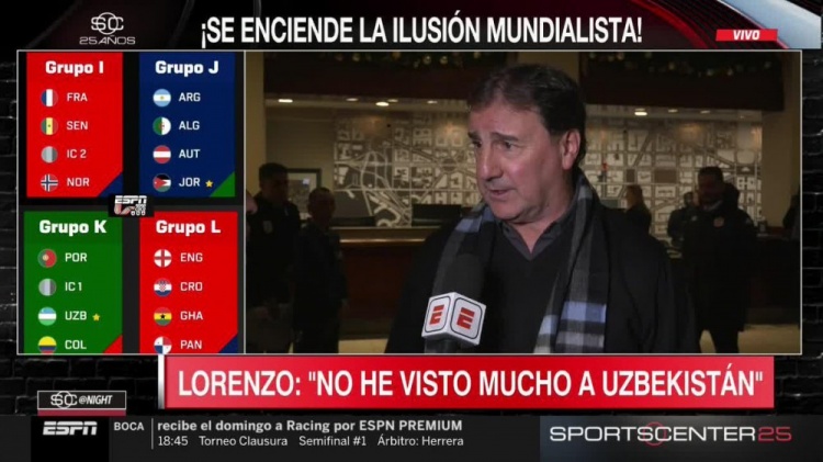 12月6日,世界杯小组抽签结果正式公布,哥伦比亚与乌兹别克斯坦、葡萄牙以及其他洲际附加赛球队共同被分在K组。哥伦比亚队的主教练洛伦佐在接受媒体采访时,展望了南美球队在本届世界杯中的前景。