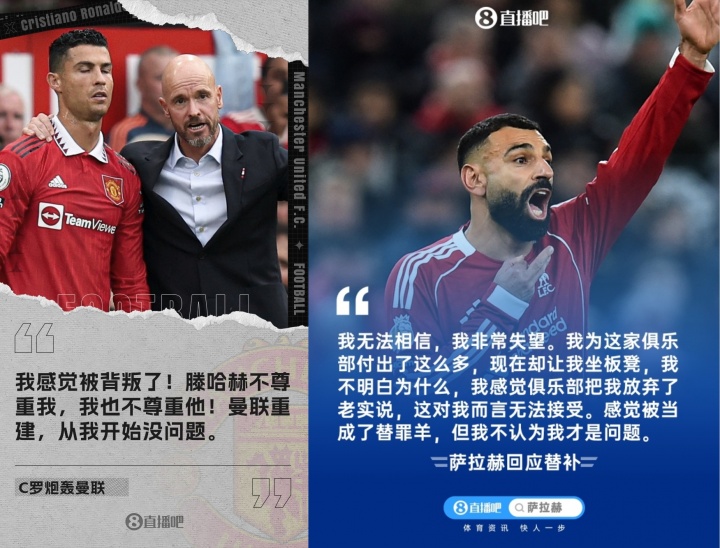 回顾2022年11月,C罗在摩根的采访中谈及曼联时表示,俱乐部内部对他的态度令人失望,甚至有暗示他离开的声音。他直言滕哈赫缺乏对自己的应有尊重,并对教练的一些决策表示质疑,认为这些理由难以成立。