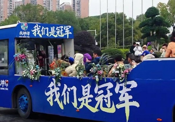 公交公司在得知永州队于12月27日晚间赢得比赛后,迅速行动起来,连夜完成了花车的改造工作,最终将这辆老旧的公交车打造成了一辆璀璨夺目的冠军巡游花车。呼应着充满激情的庆祝气氛,这条冠军巡游车专线在1月1日至3日开放,为市民带来了参与感和荣耀感。
