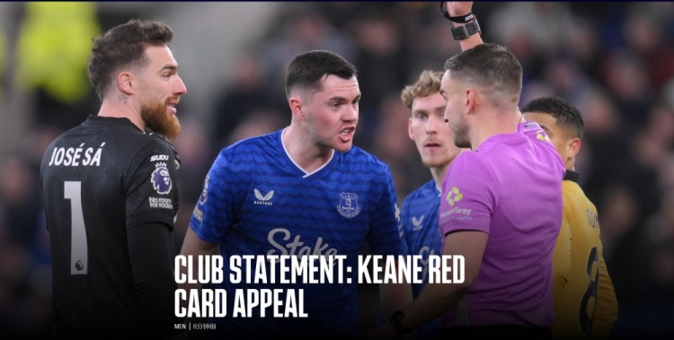 1月9日讯 埃弗顿足球俱乐部近日宣布,关于迈克尔·基恩在与狼队的英超比赛中被红牌罚下的上诉,英足总小组已作出驳回的决定。这一消息让俱乐部倍感惋惜。