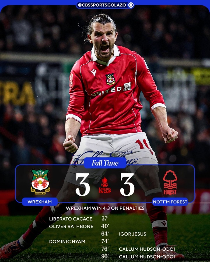 在这场比赛中,雷克瑟姆曾一度取得两球的领先,但诺丁汉森林的奥多伊表现出色,上演双响,帮助球队将比赛拖入加时。经过激烈的较量,双方最终进入了点球大战。