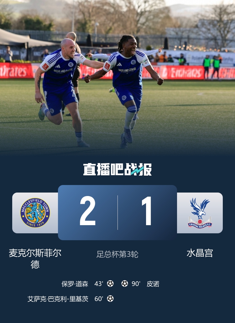 1月10日,足总杯的第三轮赛事上演了一场令人瞩目的较量,来自英格兰第六级别联赛的麦克尔斯菲尔德迎战卫冕冠军水晶宫。在这场史诗般的对决中,双方的斗志如火如荼,几乎每一秒都充满了悬念和期待。