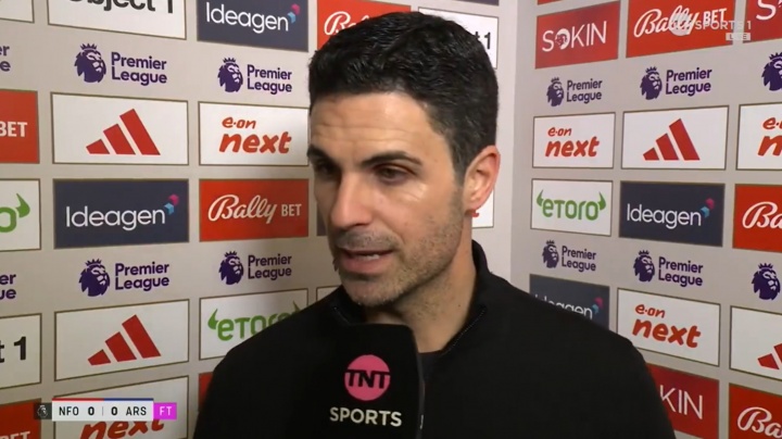 阿森纳在客场以0-0战平诺丁汉森林,依旧在英超积分榜上以7分优势领跑。赛后,阿森纳的主帅阿尔特塔接受了TNT的采访,分享了他对比赛的看法。