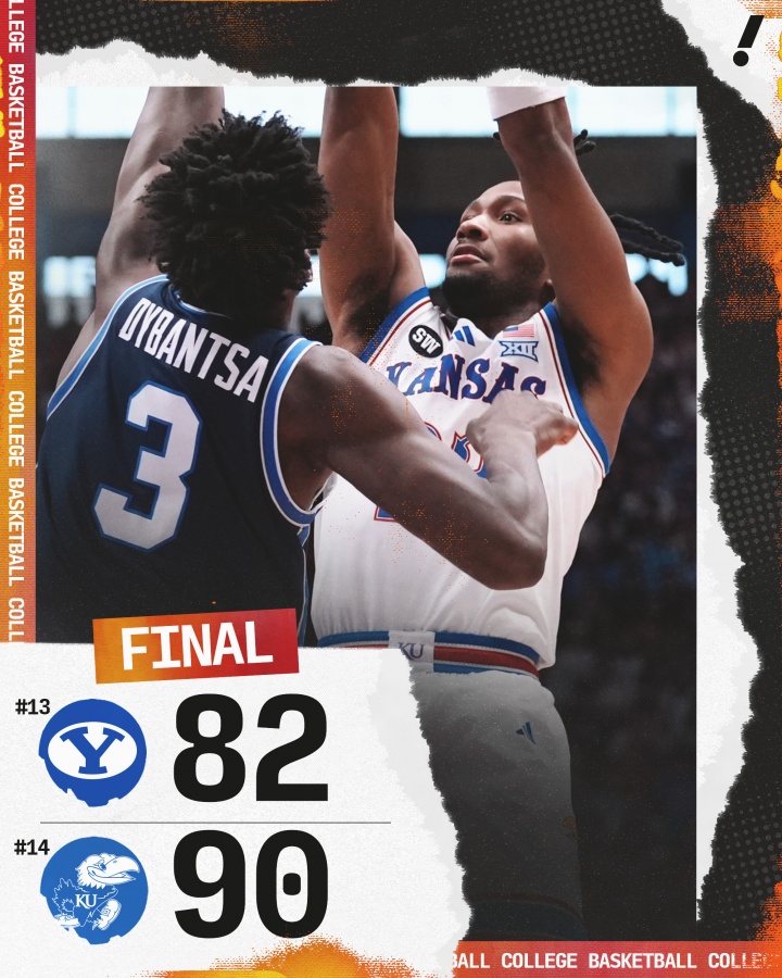 在最近一场NCAA常规赛中,堪萨斯大学展现了强大的竞技状态,在主场以90-82战胜了杨百翰大学,成功收获五连胜。这场比赛的焦点无疑是2026年的准状元之争,吸引了多位NBA球队高管现场观战,包括马刺总经理布莱恩·赖特、雷霆总经理普雷斯蒂、篮网总经理肖恩·马克斯和步行者总裁凯文·普理查德。