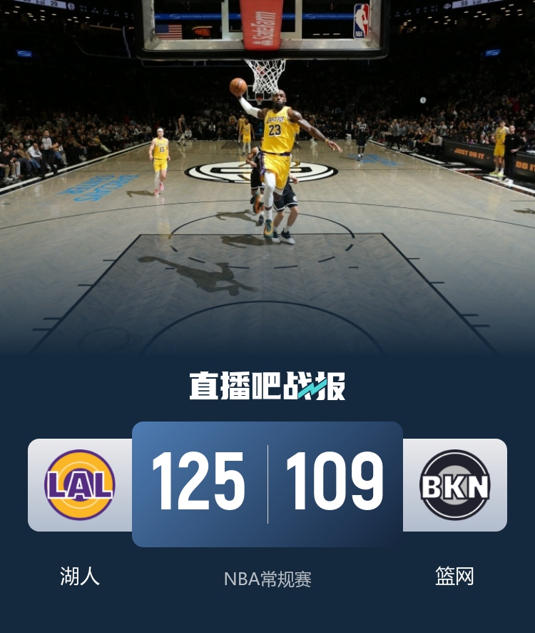 下半场开始后,篮网的进攻似乎有所复苏,双方开始互相得分,分差在30分上下徘徊。三节结束时,湖人以100-74仍旧保持着较为舒适的领先。进入最后一节,湖人稳扎稳打,始终保持着优势,比赛的悬念早已烟消云散,最终以125-109拿下了这场比赛,笑到最后。