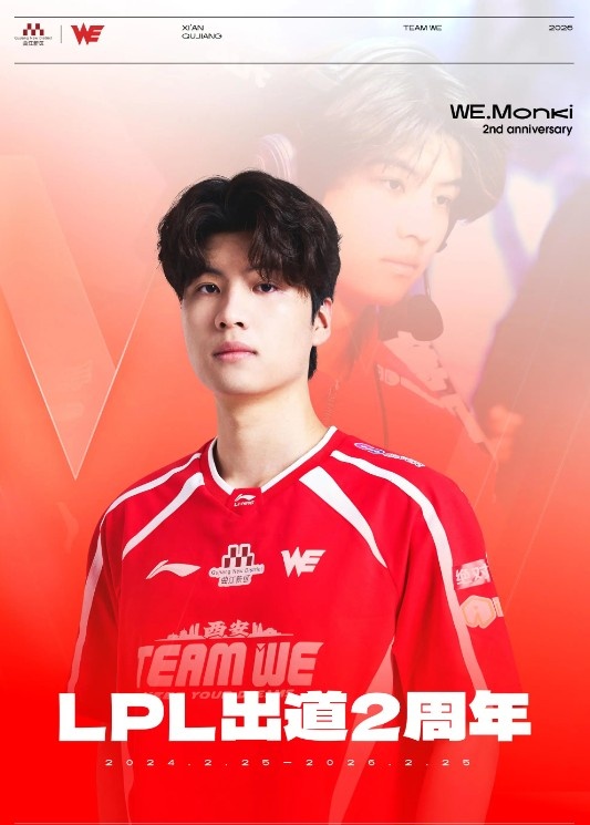 值此庆祝之际,向Monki送上最诚挚的祝福,祝他在LPL出道两周年快乐!未来的旅程充满希望,我们始终会在他身后支持与陪伴。让我们一起期待Monki在未来的表现,见证他的每一个进步与成功!