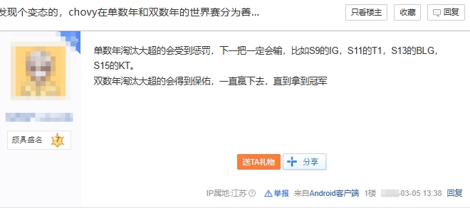 在电竞圈,奇妙的统计数据总能引发热议,最近就有网友晒出了一个有趣的发现:每当Chovy被淘汰的年份是单数时,其所在战队就会遭遇一场“劫难”,下一轮必定会落败。而在双数年,他被淘汰的战队则宛如得到了保佑,顺风顺水,最终甚至捧起冠军奖杯。