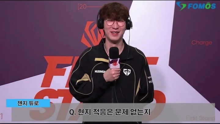 全球先锋赛的第四日,GEN队犹如一阵旋风以3比0直接碾压LYON,成功晋级四强。赛后,标志性的辅助选手Duro接受了韩媒FOMOS的独家采访,这里有一些妙语连珠的问答,看看他是如何自信地调侃自己队伍的。