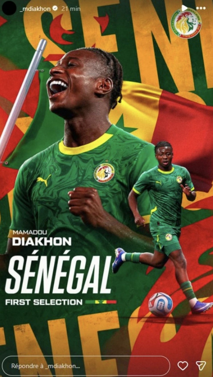 塞内加尔国家队此次征召马马杜·迪亚孔,旨在填补因伤缺阵的马内所留下的空缺。随即,马马杜·迪亚孔在社交媒体上分享了身着塞内加尔国家队球衣的照片,展示了他对此次代表国家队的荣耀和期待。