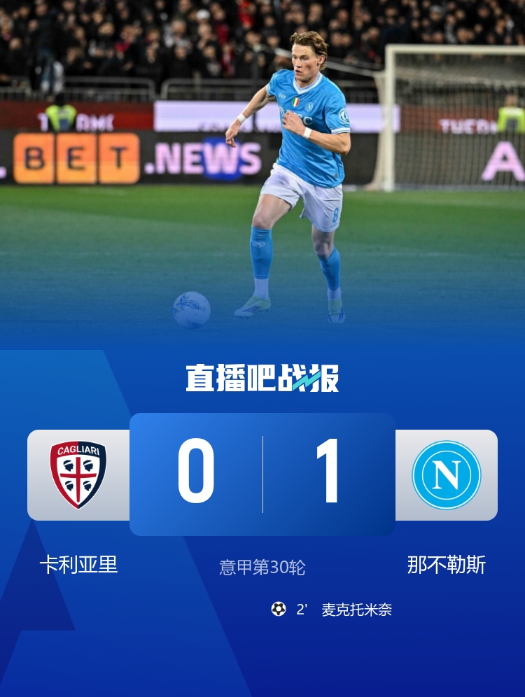 开场仅2分钟,麦克托米奈在禁区内的混战中捅射破网,为那不勒斯率先取得领先。这一进球迅速改变了场上的节奏,卡利亚里在接下来的时间里努力寻求扳平的机会。尽管他们的防守相对稳固,但那不勒斯在进攻上展现了更强的威胁。