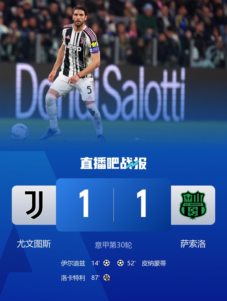 在2025-26赛季意甲联赛第30轮的较量中,尤文图斯主场迎战萨索洛,比赛于北京时间3月22日凌晨3:45进行。尽管尤文在上半场依靠伊尔迪兹的进球取得领先,但最终以1-1的平局收场,无缘三连胜,积分暂时停留在54分,排名积分榜第五位。