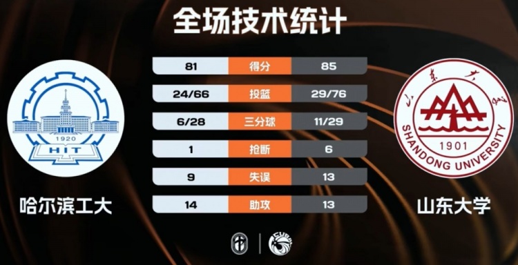 在末节的对决中,场面依旧不太美观。双方如同漫天飞舞的砖块。最后几分钟,山东大学依靠聂宸彬和冯俊畇的外线投射稍微稳住局面,甚至张为的罚球也犹如致命一击。但龚安却在关键时刻选择了误打误撞的三分球,结果还是没能拯救整场比赛。最终,山东大学在强弱悬殊的情况下,竟然以85-81险胜哈工大,简直就是一场低效的胜利。