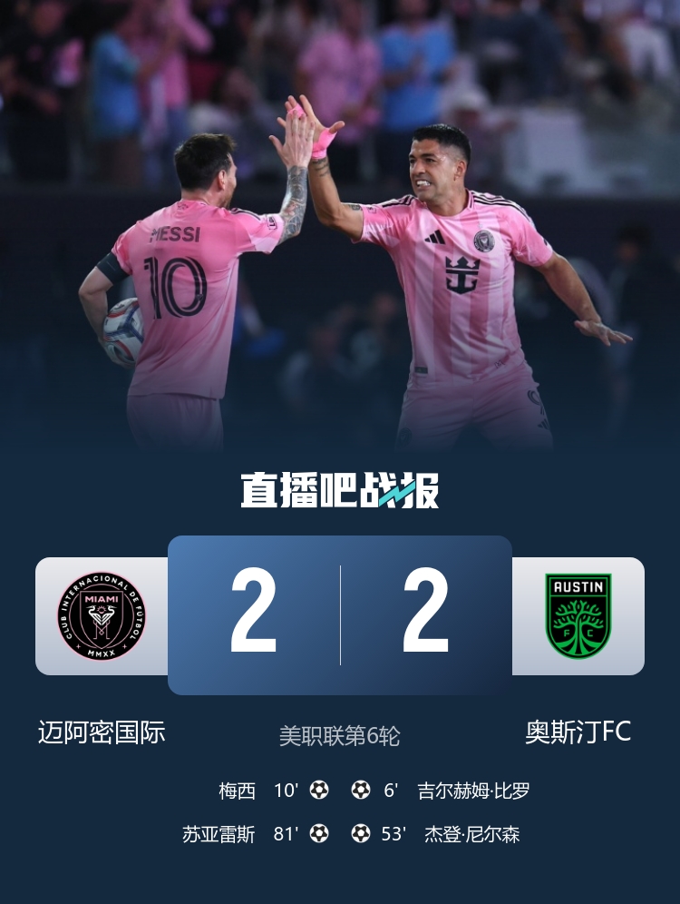最终,随着伤停补时5分钟的结束,比赛以2-2的平局告终。迈阿密国际积累了11分,稳坐东区第二的位置,而奥斯汀FC则获得了6分,提升至西区第十的位置。毫无疑问,这场比赛展现了两支球队的实力,也为后续的赛季增加了更多悬念。