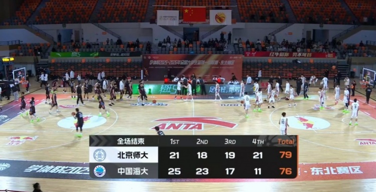 决胜的末节,北京师范大学骤然发力,邵振恒的三分球仿佛点燃了全队的斗志,他们以气势如虹的13-5小高潮反超。然而,中国海洋大学及时回归比赛状态,邢晨垚的关键进球一举稳住局面,接着赵江烽再添一记三分。比赛最后阶段,邢晨垚的两罚不中让局势悬念重重,北京师范大学抓住机会,凭借邵振恒的突破反击实现再度反超,而卓标的失误则最终让中国海洋大学无力回天。最终,以79-76的分数,北京师范大学完成了惊险的逆转,昂首挺进八强,险象环生,情势瞬息万变,这就是大学篮球的魅力所在!