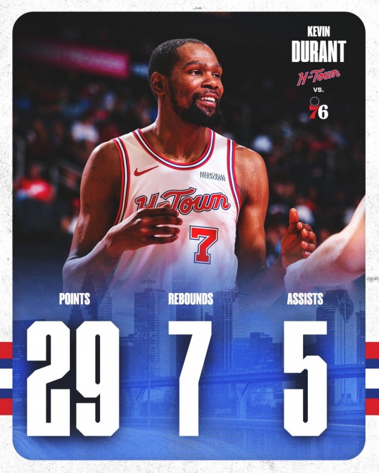 在火箭与76人的激烈较量中,凯文·杜兰特火力全开,独自贡献了29分。他本赛季的总得分已达1993分,仅距2000分大关差7分。在火箭尚有两场重要比赛的情况下,杜兰特极有可能在本赛季中突破2000分。这将是他个人生涯中第八次达到这一里程碑。