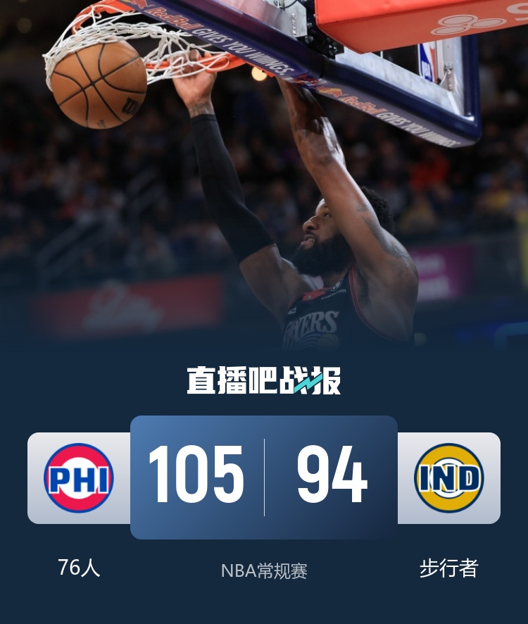 在4月11日的NBA常规赛中,76人迎战步行者。这场在印第安纳进行的比赛,76人在遭遇三连败的阴霾下,以43胜37负的佳绩排名东部第八,而步行者的战绩则是19胜61负,位列东部第十四。尽管恩比德因伤未能出场,76人依然在客场展现了战斗精神。