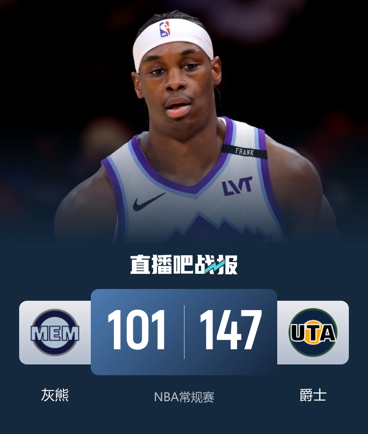 下半场开始后,爵士彻底掌控了比赛,第三节他们再度火力全开,斩获36分,净胜对手14分。到了最后一节,他们又贡献了一波23-6的攻击高潮,经过一系列的强势表现,爵士的领先优势拉大到50分以上,彻底击穿了灰熊的防线,比赛早早锁定了胜局。最终,爵士在主场以一场大胜结束了这波连败的困境。